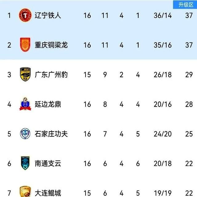 辽宁铁人刚1-0磨死广西平果,重庆铜梁龙转头就4-3绝杀青岛红狮,两大冲超热门继续同分死咬。